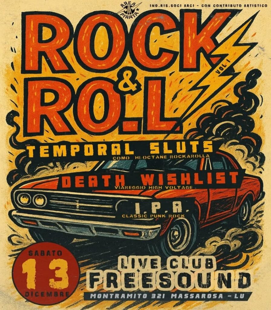 Formed at the dawn of 2023 in Viareggio (Tuscany), Death Wishlist emerged from the fervent passions of its members for punk-rock and the exhilaration of live gigs. Led by Cosimo Crott on vocals (ex Tornado / Turtleback), accompanied by Jacopo Giannetti on guitar (ex Peawees / Creepmouse), Leonardo Tomei on bass (ex Tornado / Id3alspleen), and Andrea Marchetti and Gianfilippo Mei on guitars and drums respectively, the band gears up to unleash their sonic onslaught upon the world.